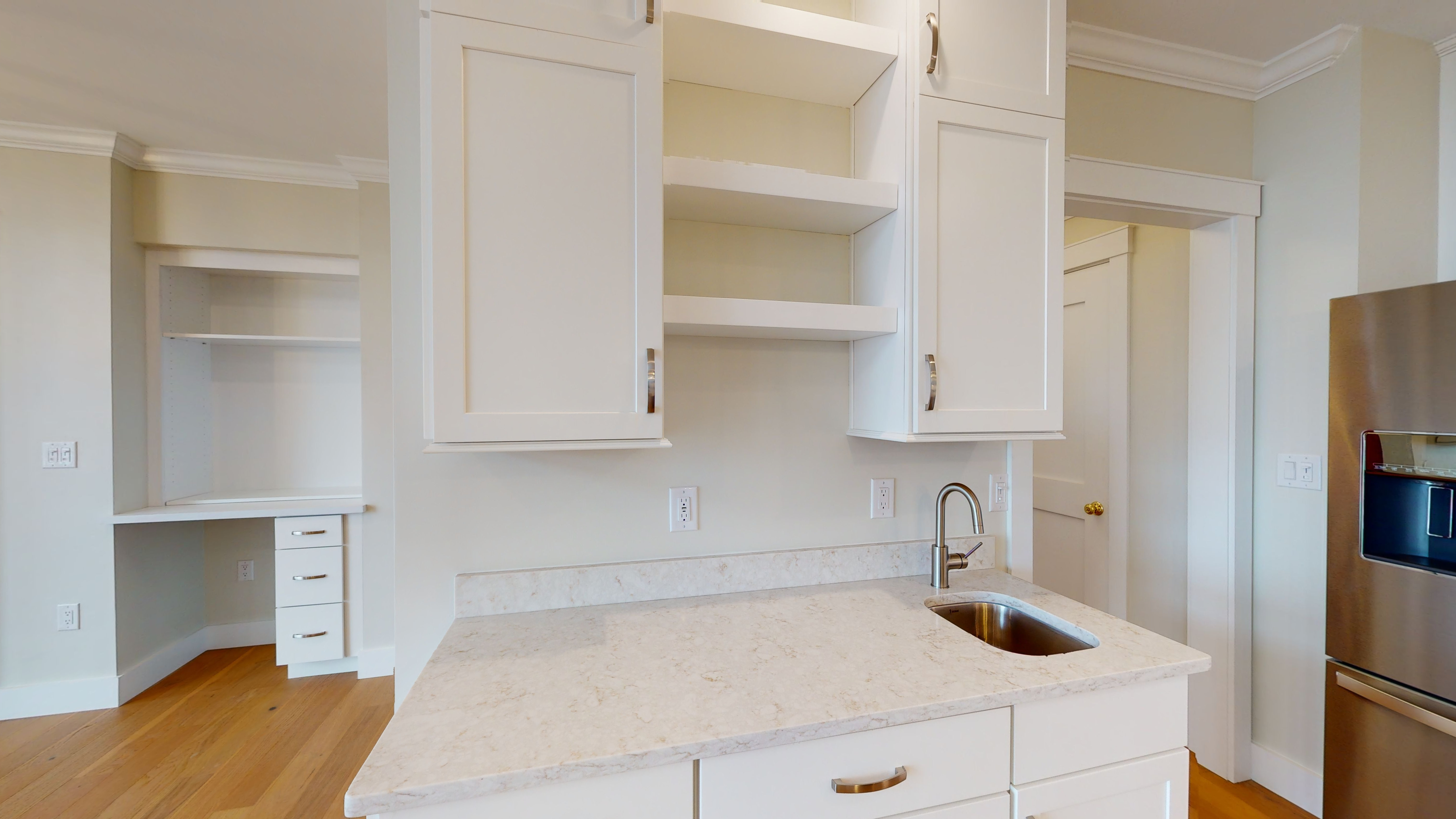 The Kinsmen features 1867 square feet of living space with a covered deck and designated parking and storage in lower level of the building. Highlights include an open concept layout, engineered oak hardwood, porcelain & luxury vinyl tile with quartz kitchen and bath countertops