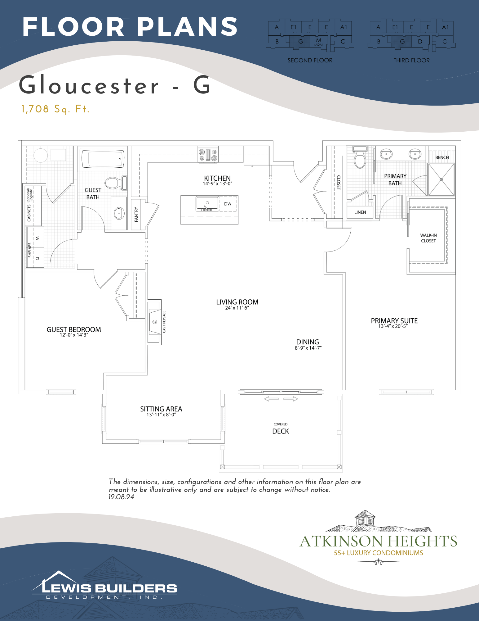 The Gloucester features 1708 square feet of living space with a covered deck and designated parking and storage in lower level of the building. Highlights include an open concept layout, engineered oak hardwood, porcelain & luxury vinyl tile with quartz kitchen and bath countertops