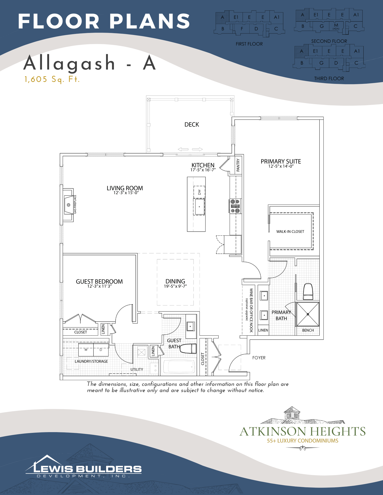 The Allagash features 1605 square feet of living space with a covered deck and designated parking and storage in lower level of the building. Highlights include an open concept layout, engineered oak hardwood, porcelain & luxury vinyl tile with quartz kitchen and bath countertops