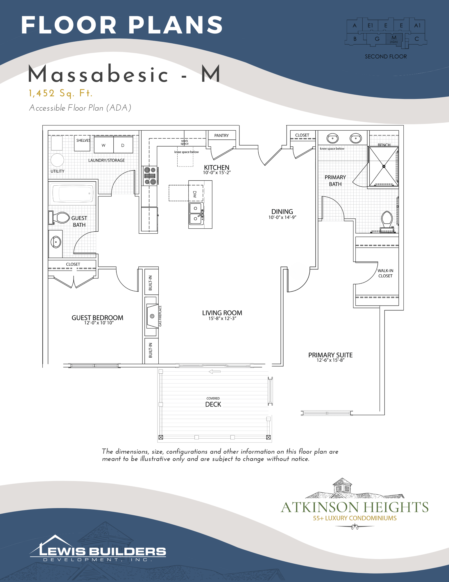 The Massabesic features 1452 square feet of living space with a covered deck and designated parking and storage in lower level of the building. Highlights include an open concept layout, engineered oak hardwood, porcelain & luxury vinyl tile with quartz kitchen and bath countertops