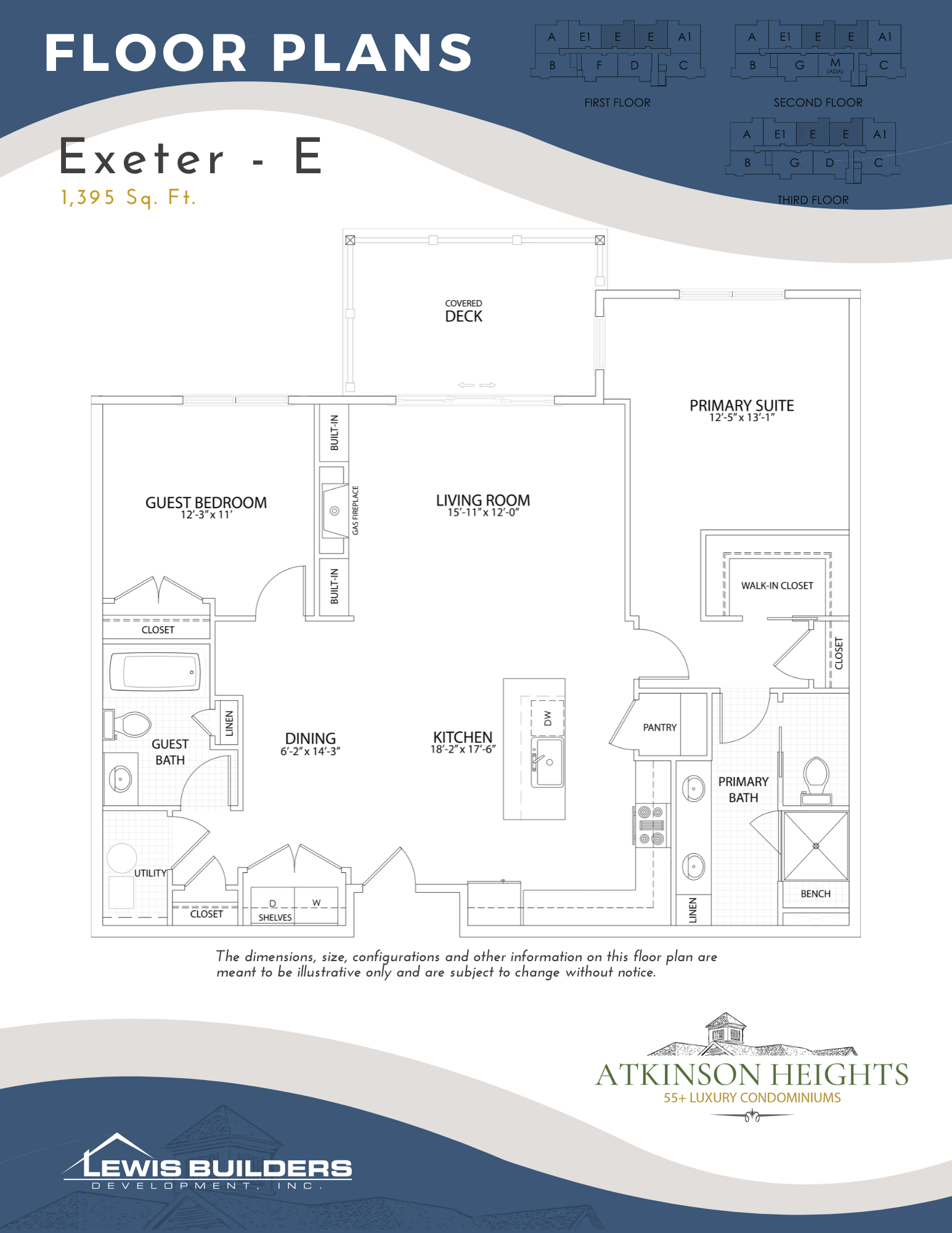 The Exeter features 1395 square feet of living space with a covered deck and designated parking and storage in lower level of the building. Highlights include an open concept layout, engineered oak hardwood, porcelain & luxury vinyl tile with quartz kitchen and bath countertops