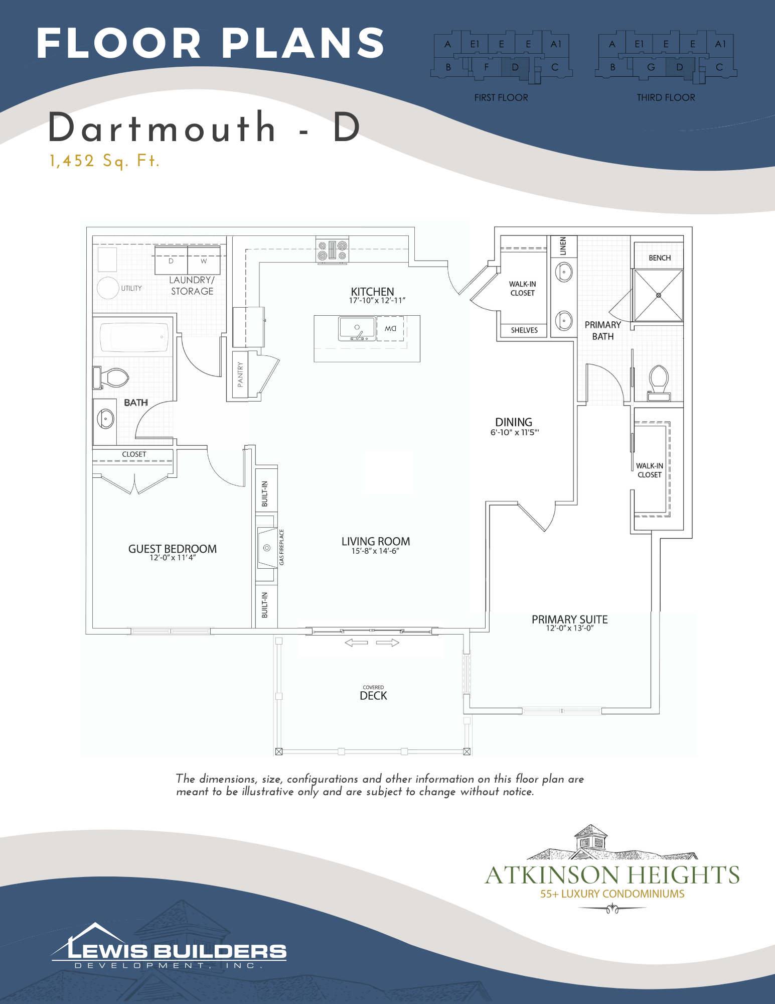 The Dartmouth features 1452 square feet of living space with a walkout patio and designated parking and storage in lower level of the building. Highlights include an open concept layout, engineered oak hardwood, porcelain & luxury vinyl tile with quartz kitchen and bath countertops